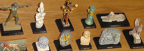 ついに管理人はオタクと化してしまったか!?この頃、お菓子のおまけのフィギュア集めに夢中になる大人が急増しているのを、やや冷めた目で見ていた管理人ではありましたが、このシリーズだけは例外です。歴史好きの私には、これらの古代文明のフィギュアに心を揺さぶられます。職場の友人から譲り受けている味覚糖の「コレクト倶楽部」で24個全部集まるには、まだ少々時間がかかりそう。ちっちゃなフィギュアに古代のロマンを感じている管理人でした。 |