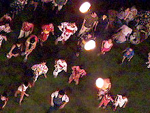 今日は台風5号の影響で、沖縄を除いて星空は望めないようです。しかし、もしも夜に晴れるようであったら、東の空を仰ぎ見てください。画像は午後9時の夜空をあらわしたものです。七夕の主役の星がどれか説明します。こと座のベガが「織姫」、わし座のアルタイルが「牽牛」です。ちなみに、はくちょう座のデネブを線で結ぶと“夏の大三角形”と言います。星に託した皆さんの願いが叶うといいですね。 | ||||||