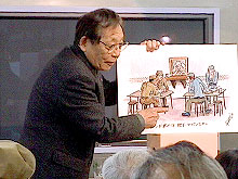 ここ数日間で、私の管理運営するHPの一つが多大なアクセス数を記録しています。そのアクセスは海の向うの“ロシア”からです。昨年末に開設したばかりの「旧ソ連抑留画集・ロシア語版」を、ロシアのサイト「JAPON.ru」にアンドレイさん(写真左)がご紹介して下さいました。「旧ソ連抑留画集」は父の60年前の体験をイラストにしたものですが、ロシアの方々のご好意によって翻訳され、そして今、多くのロシアの人々が作品のメッセージを感じて下さっています。本当に嬉しい限りです。 |