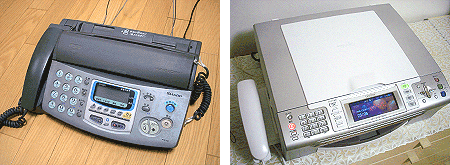 家庭の情報ツールとしてインターネットも重要ですが、やはりFAXも必須です。長い間使った我が家のFAX(左)もついに故障し、この度最新型に買い替えました。以前のFAXはロール感熱紙に印字するのみですが、先日、ノートPCを購入したことから、それのプリンターにも使えるものをと考え、カラースキャナ搭載の複合機(右)にした次第です。さて、早速使ってみたら、その機能の高さには驚くばかり。1台で8役をこなす優れものです。わずか数年の間で本当に時代は進歩したものです。 |